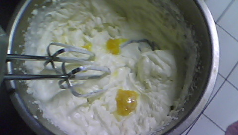 3.蛋白打到有泡沫出現後再加入砂糖打至硬性發泡
