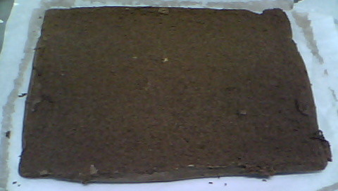 1.蛋糕片出爐後馬上倒扣到另一張烤盤紙上(B紙),放涼後撕去原本那張烤盤紙(A紙),將A紙乾淨的那面朝上,再把蛋糕片扣到A紙上後撕去B紙