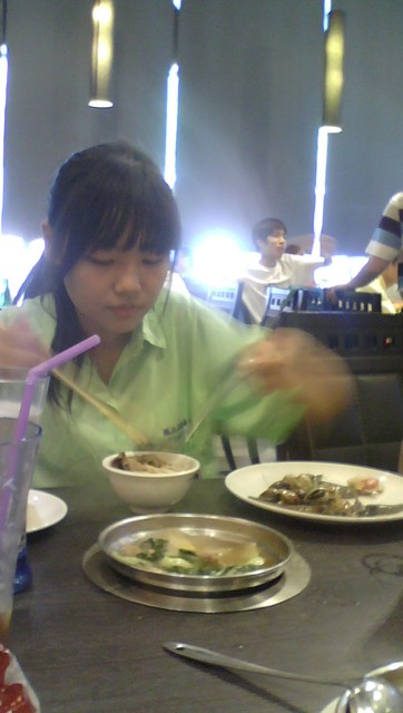 看到她只拿青菜、豆腐、雞肉片(熱量最低的肉)