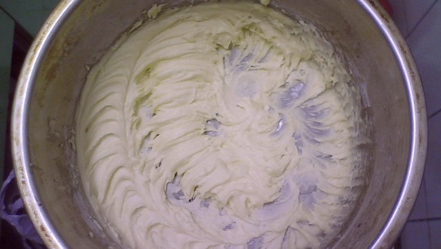2.烤箱預熱160度,奶油放軟後加糖粉打成髮臘狀