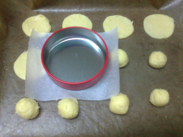 2. 秤10g的麵糊揉圓,放在烤盤上